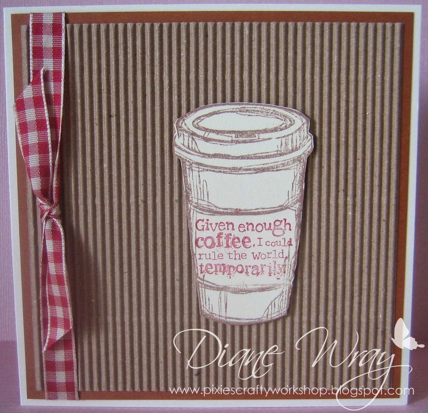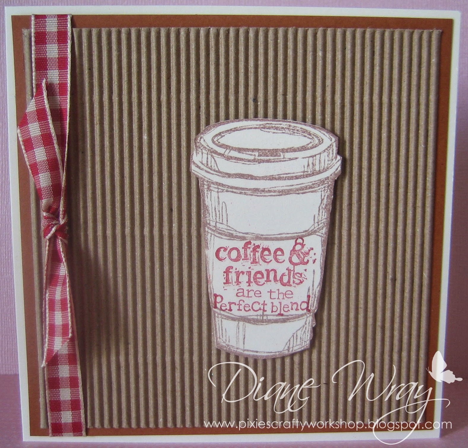 - stamps are from SU's 'Perfect Blend' set, the cup stamped using Versafine 'Vintage Sepia' and the words using SU's 'Real Red'. Then the cup was just fussy cut and popped onto the card using thin sticky pads