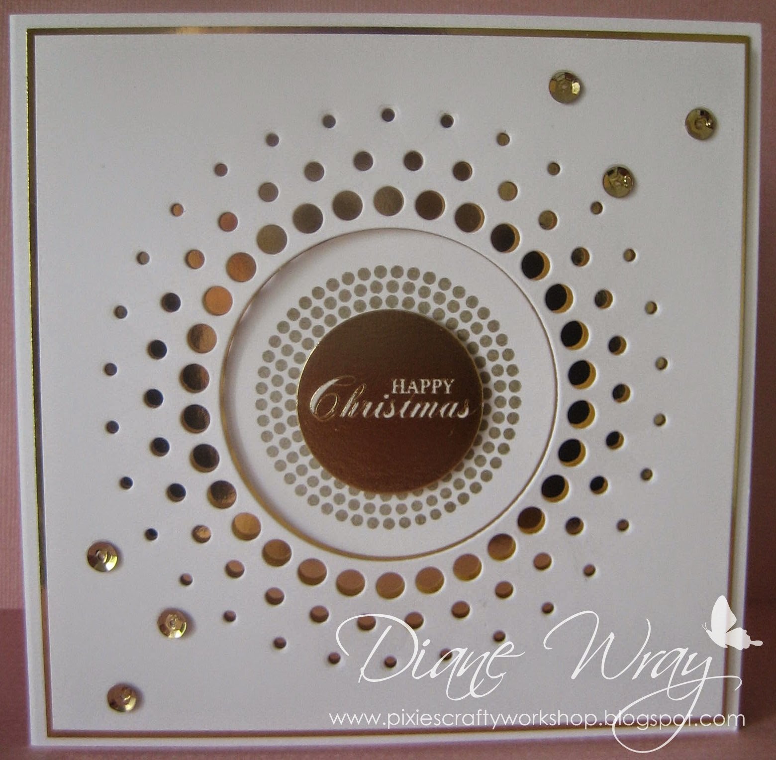 - a slightly smaller again piece of white card stock, die cut using a Memory Box 'Large Circle Burst' die which was adhered to the gold card using thin sticky pads