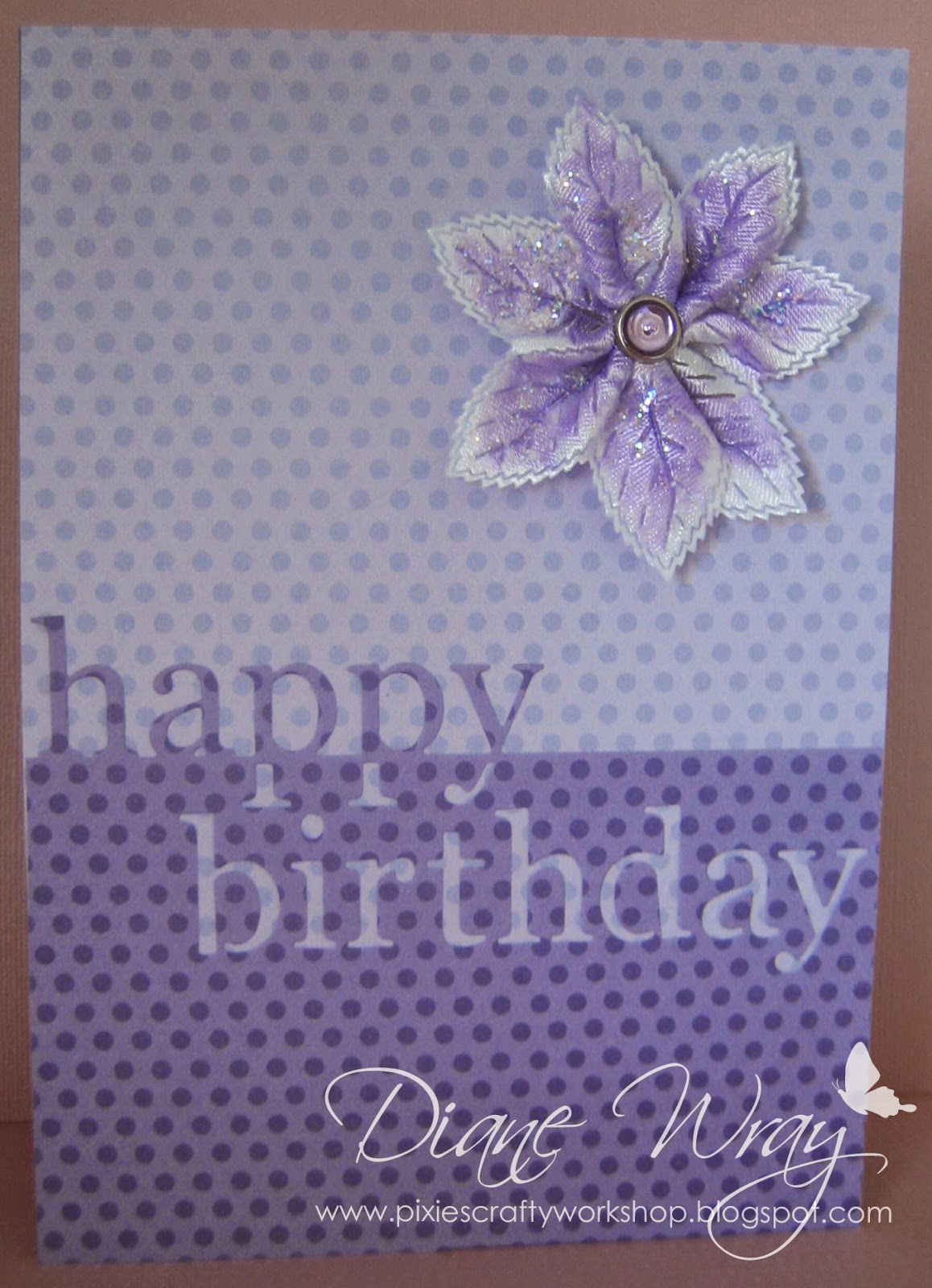 - Memory Box 'Grand Happy Birthday' die and a couple of sheets of mauve spotted paper from 'Wild Rose Studio's 'Wintry Christmas' paper pack - it's contemporary mauve, pink and aqua stripes and spots and ideal for non-Christmas cards