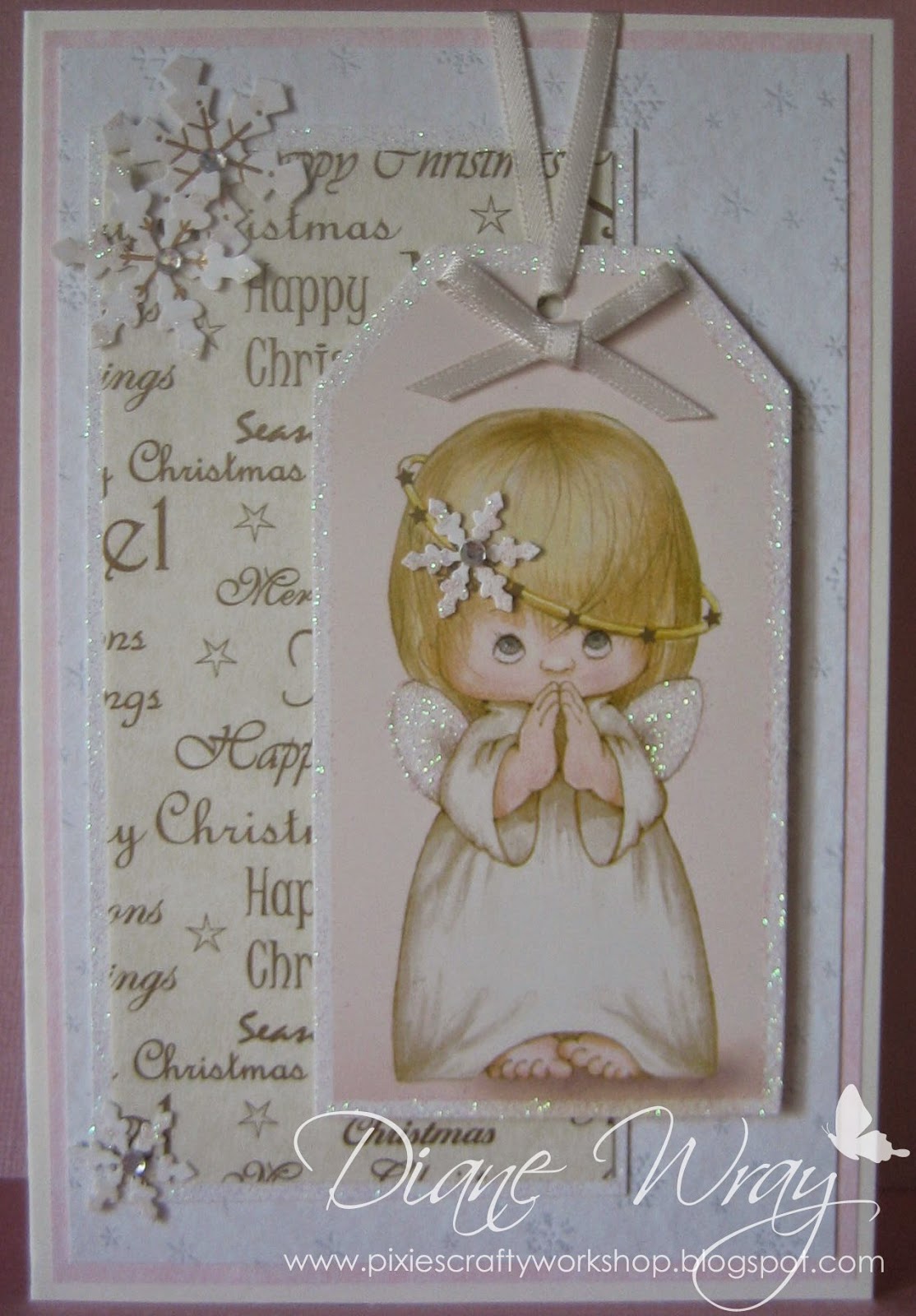 - just added a few more snowflakes, punched using different Woodware punches from the original card the little angel came on and topped off with sparkly gems