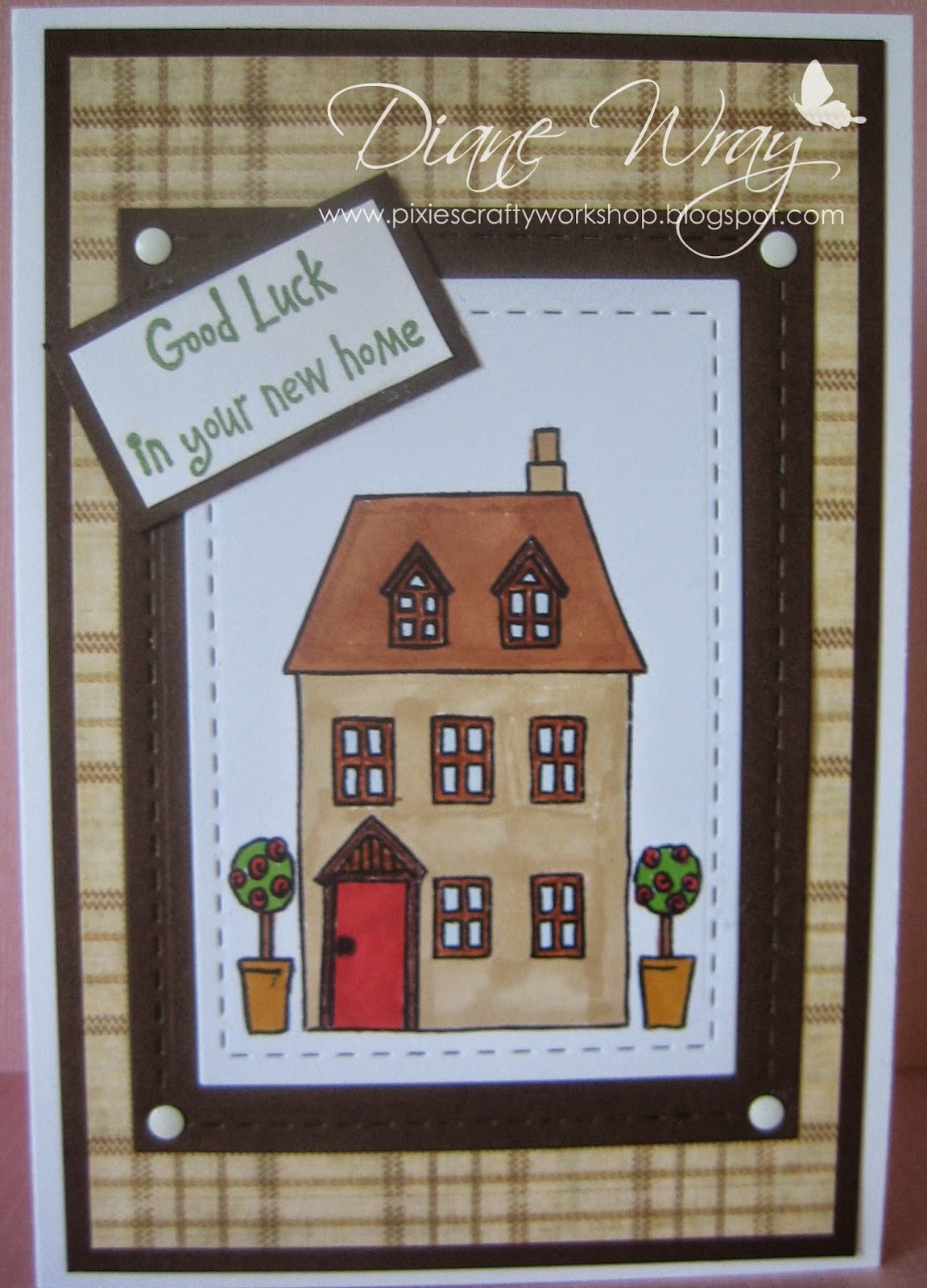 A bit like Sympathy cards, New Home ones (when folk let you know they're just about to move house) can catch you on the 'hop'. So this card is for my standby box: